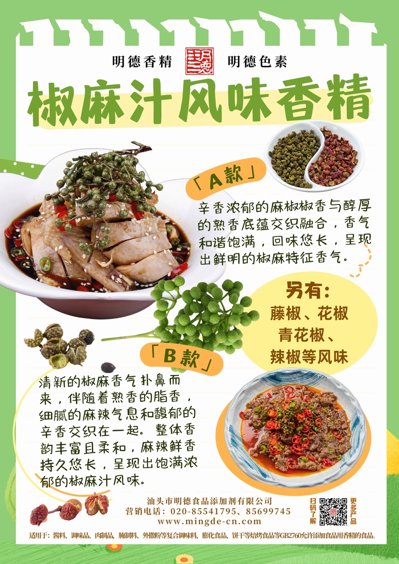 明德椒麻汁風(fēng)味香精 | 鮮香麻辣 平衡濃郁與層次汕頭市明德食品添加劑有限公司推出的椒麻汁風(fēng)味香精,精準還原花椒與辣椒的獨特風(fēng)味,融合醇厚底香與豐富層次,適用于多類(lèi)調味醬、鹵味、川味餐飲預制菜及休閑食品,為B端工廠(chǎng)提供穩定且可控的麻辣風(fēng)味解決方案。